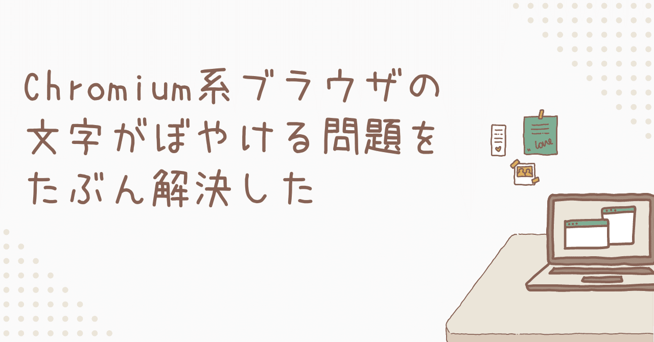 今回はChromium系ブラウザとWQHDモニターのみで起こる謎の文字のぼやけについて書きました。それらしい原因は見つけたものの、根本的な解決には至りませんでした。
